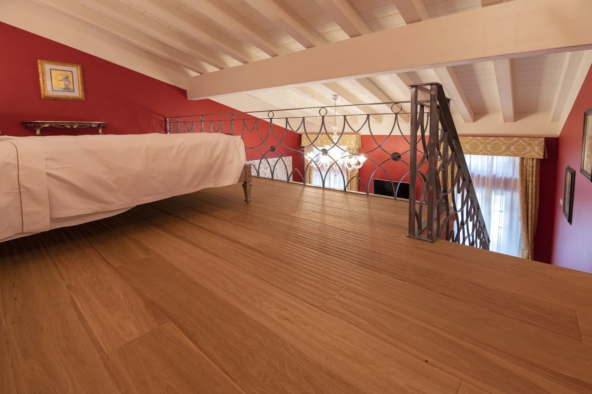 Prende il nome dalla storia di artigiani veneti (cuore veneto). È un pavimento in legno dall’aspetto caratteristico, dove piallatura e spazzolatura si uniscono trasmettendo tutta l’espressione del vero legno. Con questo tipo di parquet, sarete liberi di arredare tutti i locali, senza compromessi.